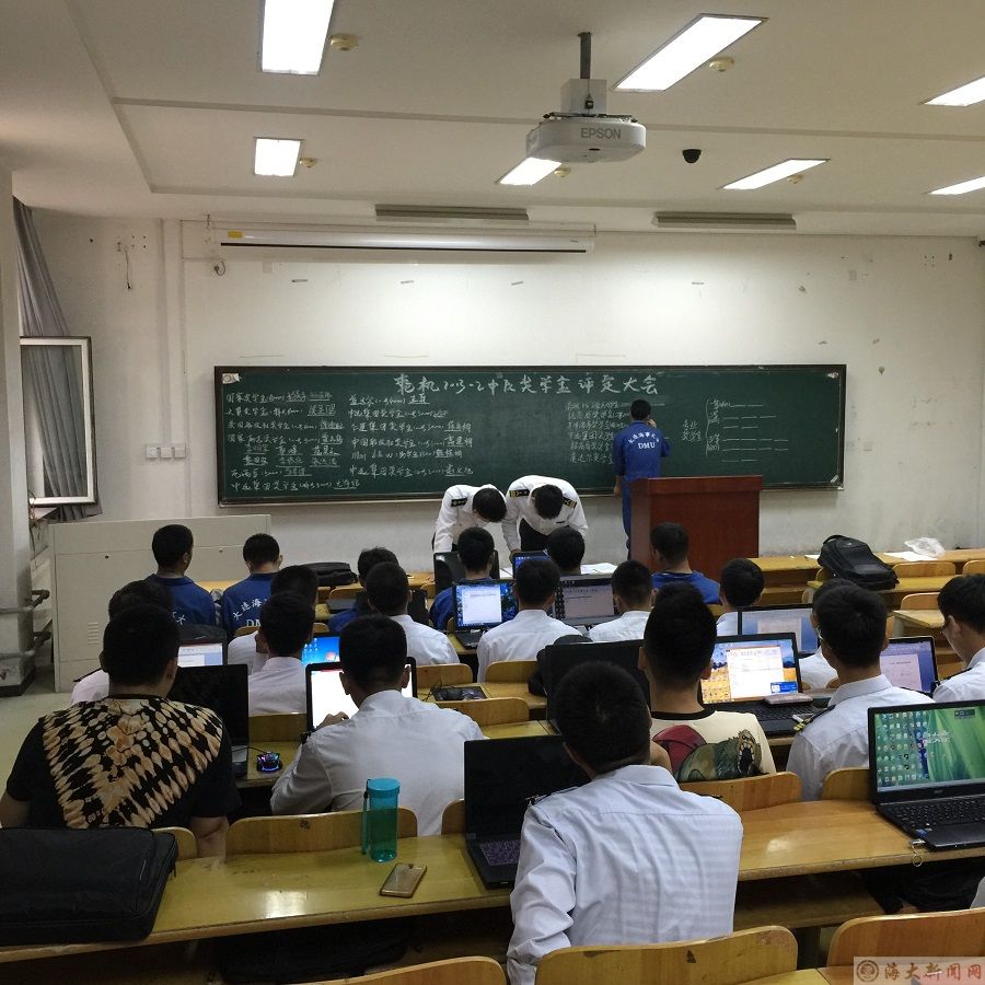 为提高同学们学习的积极性,明确学生学习目标,10月15日中午轮机工程学院轮机2013-2中队分别在远航楼105及育鲲轮实习船教室组织召开了2014-2015学年奖学金评定大会,指导员张亚培及所有参评人员参加此次评定活动。