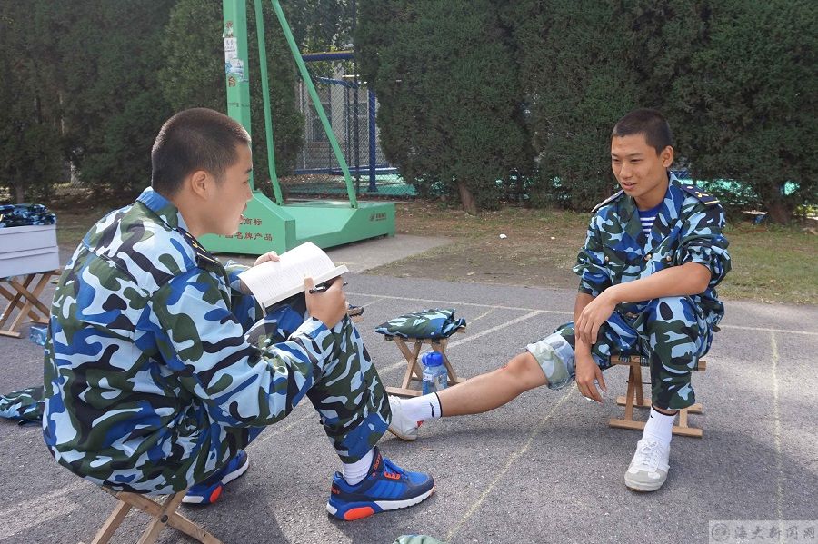 轮机工程学院一名新生在脚趾受伤的情况下,坚持参加军训,为树立典型,鼓励其他参训同学,9月10日,轮机工程学院军训宣传小组组织采访了该同学。