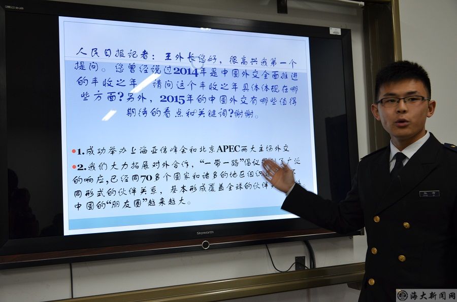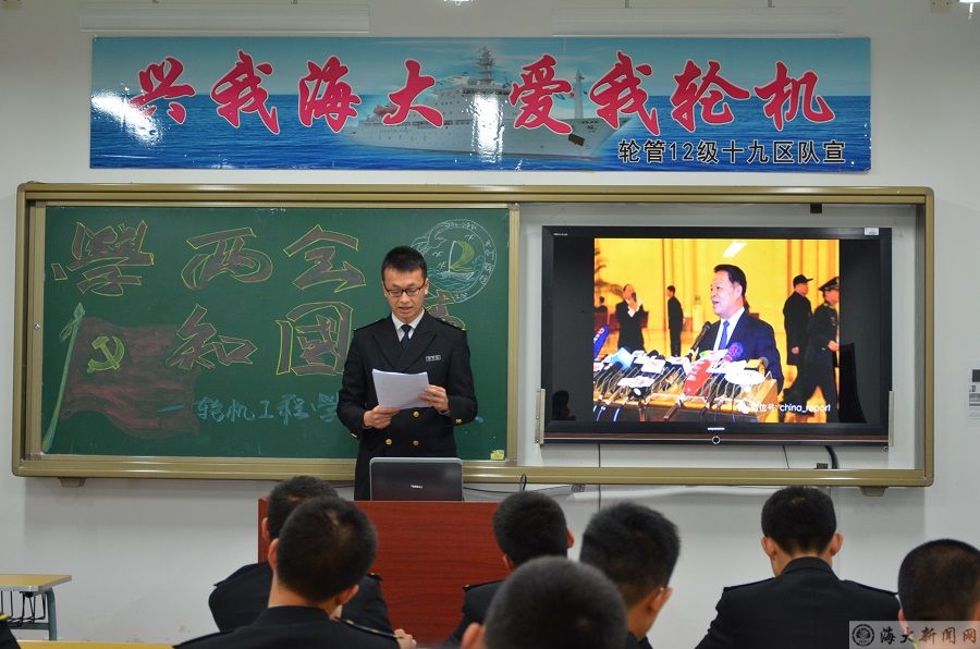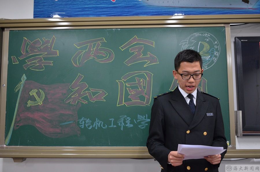 为了让同学们了解两会中各部委关于民生国是的探讨,进一步提高同学们对两会精神的认识,4月19日,轮机工程学院轮机2014-2中队在积学楼410教室召开“学两会,知国情”模拟两会,活动由孙伟政同学主持。