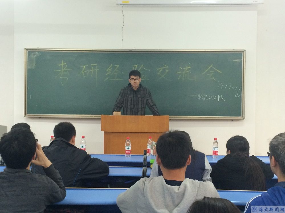 为使中队同学更好地了解和规划考研生活,加强备考过程的科学性和针对性,4月23日晚,大连海事大学轮机工程学院轮陆2012中队在学汇楼114教室召开考研经验交流会,会议由中队学习委员隋国庆主持。经过前期宣传,本次交流会共有来自轮陆2012中队和轮陆2013中队的50余名同学参加。