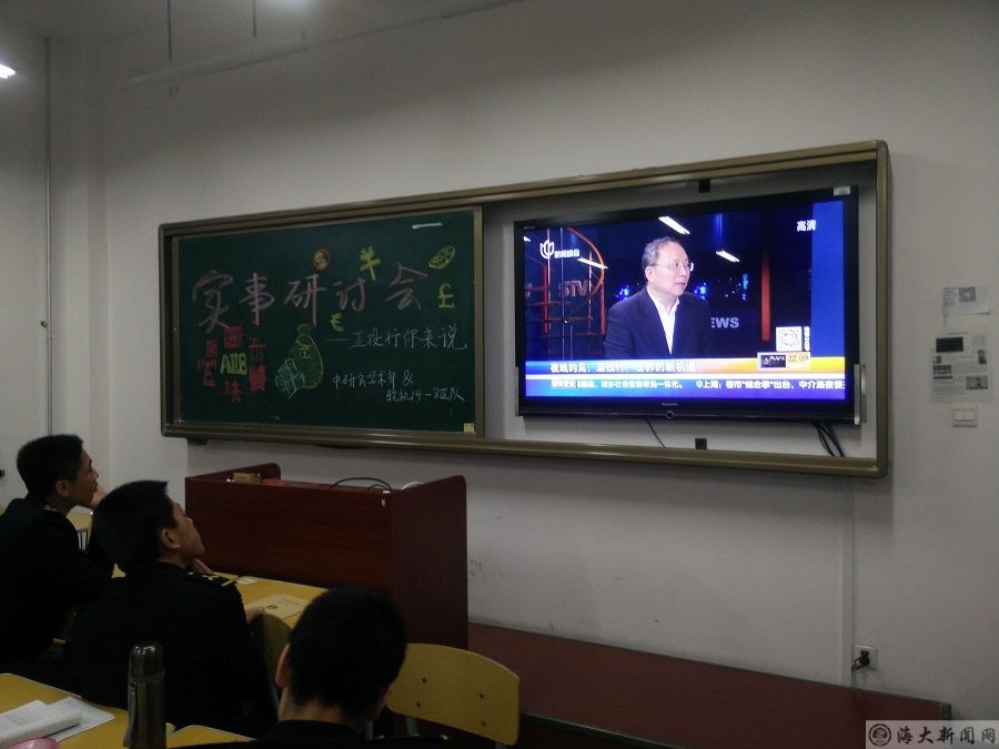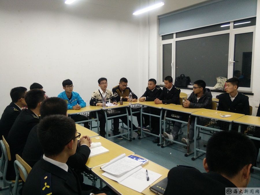 为了活跃同学们的思维,丰富学习生活,引导同学们关注时事政治,4月17日晚,轮机工程学院轮机2014-2中队8区队在积学楼311教室开展了“四进四信”学习研讨会,并围绕有关“亚投行”的时事进行了讨论。本次会议邀请到中研会学术部部长徐良威做嘉宾,会议由陶文轩主持。