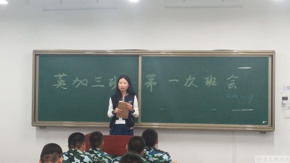 为了使班级新同学能尽快适应大学生活,并且更加全面深入地了解学院的专业概况和生活情况,轮机工程学院轮机2014-1中队3区队于10月9号在积学楼举行了第一次班会,班会由指导员助理孙凯强和英语助教范月共同主持,区队全体同学参加了本次班会。